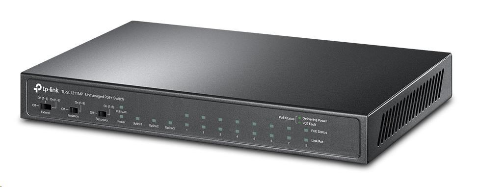 TP-Link CCTV switch TL-SL1311MP (8x100Mb/s, 2xGbE uplink, 1xSFP, 8xPoE+, 124W, fanless)