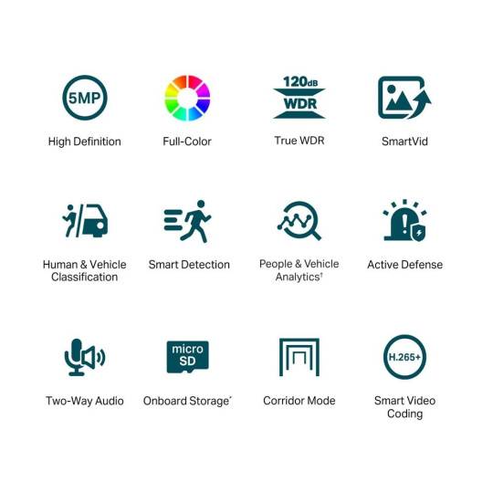 - Chytré vylepšení videa: Profesionální technologie VIGI zpracovávají videa a výrazně zlepšují jejich kvalitu, která je pro vaše sledování zásadní, včetně Smart IR, True WDR, 3D DNR a nočního vidění.