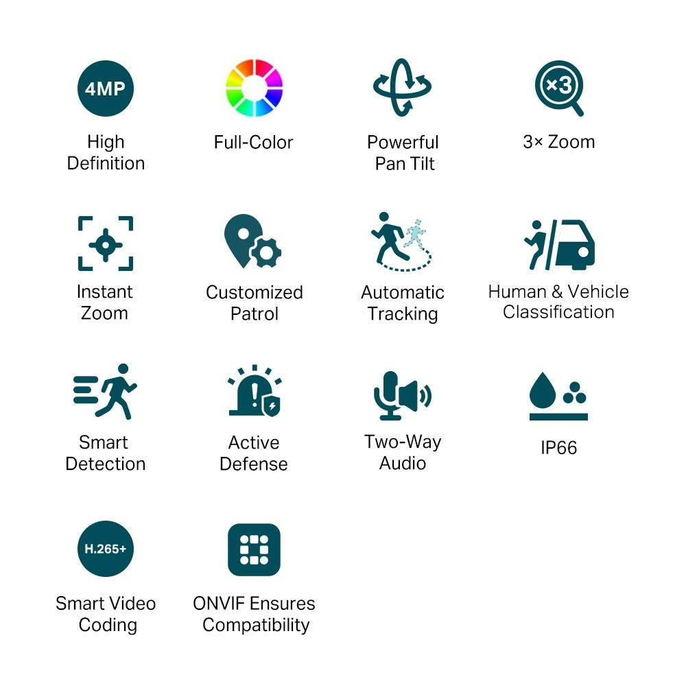 • Aktivní obrana: Okamžitě varujte potenciální vetřelce zvukem a světlem v případě abnormálních událostí.