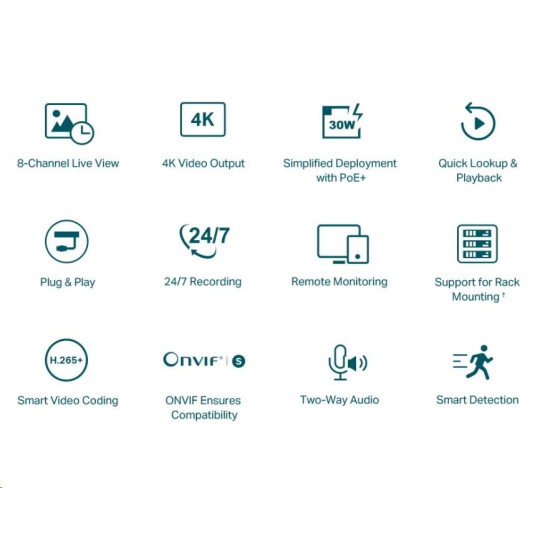- 4K HDMI video výstup a 16MP dekódovací kapacita: Ostré rozlišení obrazu až 8MP a 8kanálový displej zajistí, že zachytíte každý detail z každého úhlu.