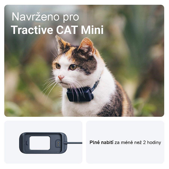 Baterie GPS lokátoru Tractive CAT Mini na jedno nabití vydrží i 48 hodin. A při aktivování zón úspory energie ji můžete používat dokonce až 7 dní. Šťávu jí opět bleskurychle dodáte s pomocí této nabíječky. Díky USB technologii a jejímu preciznímu tvarování už to nemůže být snazší!Jak samotné nabíjení probíhá? Stačí jen zařízení vložit do nástavce, zarovnat na nabíjecí body a USB kabel připojit ke zdroji napájení. Tracker se automaticky spustí a LED dioda signalizující probíhající nabíjení se rozsvítí. Zhruba po dvou hodinách budete moci lokátor z nabíječky vyjmout a znovu ho připevnit na obojek vaší malé šelmy.