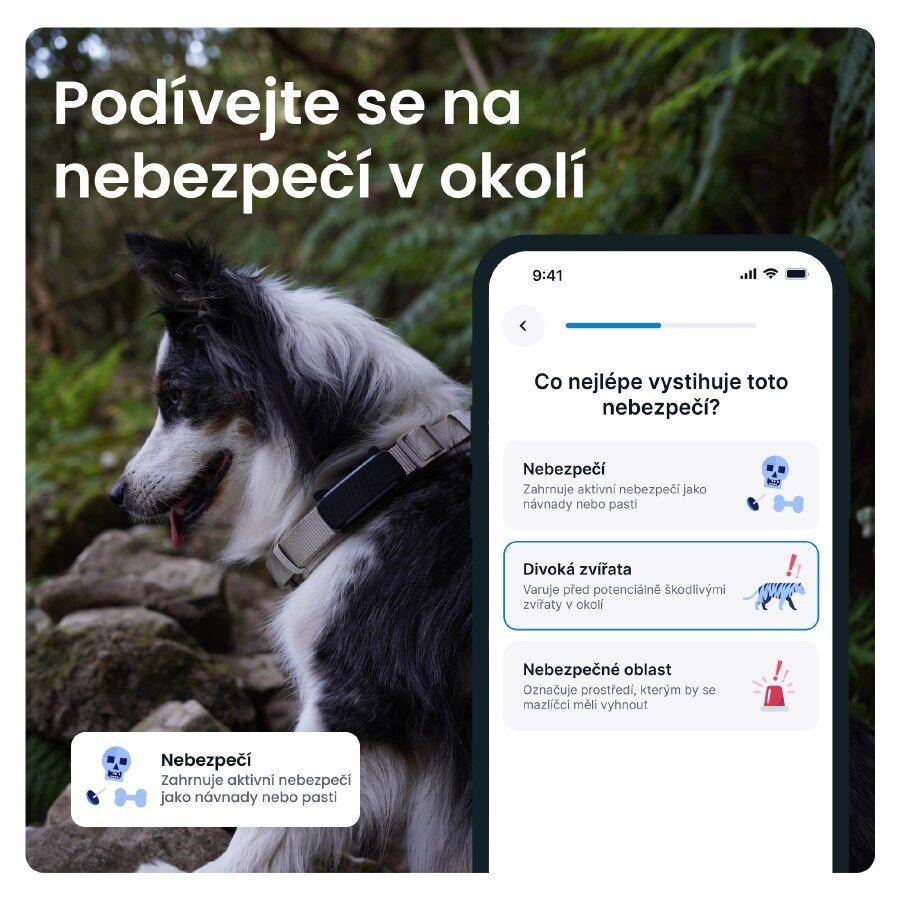 GPS tracker pro psy je 100% vodotěsný, odolný proti nárazům a jeho baterie vydrží až 10 dnů. Pasuje na většinu obojků a postrojů. Je určen pro psy o hmotnosti nad 4 kg.Zprávy o nebezpečí