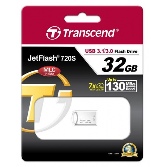 TRANSCEND Flash Disk 32GB JetFlash®720S, USB 3.1, MLC solution (R:130/W:45 MB/s) stříbná