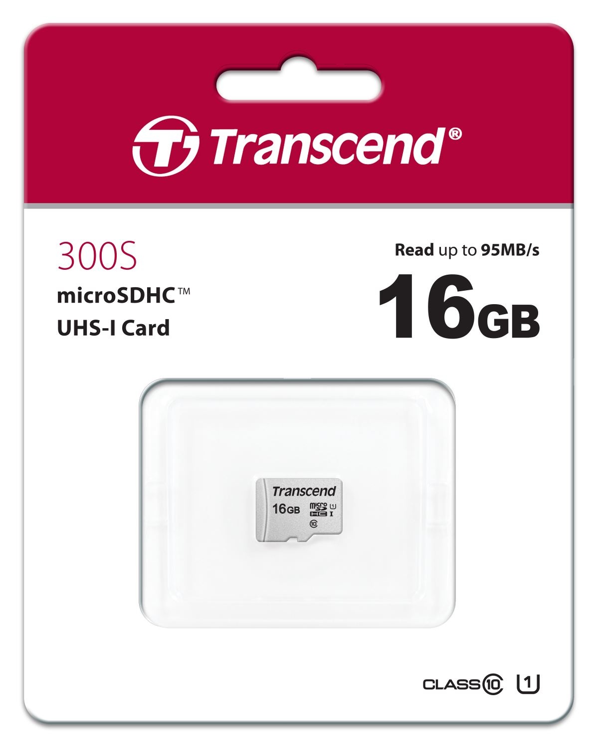 TRANSCEND MicroSDHC karta 16GB 300S, UHS-I U1, bez adaptéru