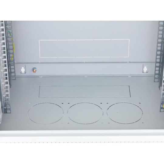 Dva páry 19“ vertikálních lišt jsou plynule nastavitelné v libovolné hloubce rozvaděče. To usnadňuje montáž zařízení i organizaci propojovacích kabelů.