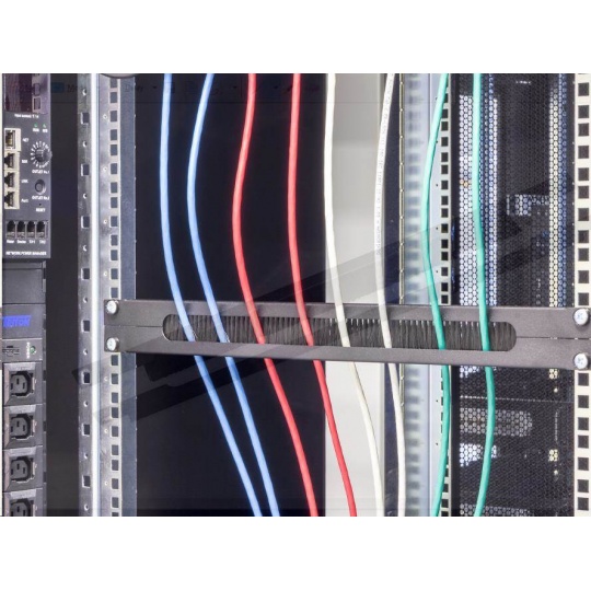 19" průchozí panel 1U rozdělený horizontálně, kartáč, otvor 350 x 21 mm, černý.... více