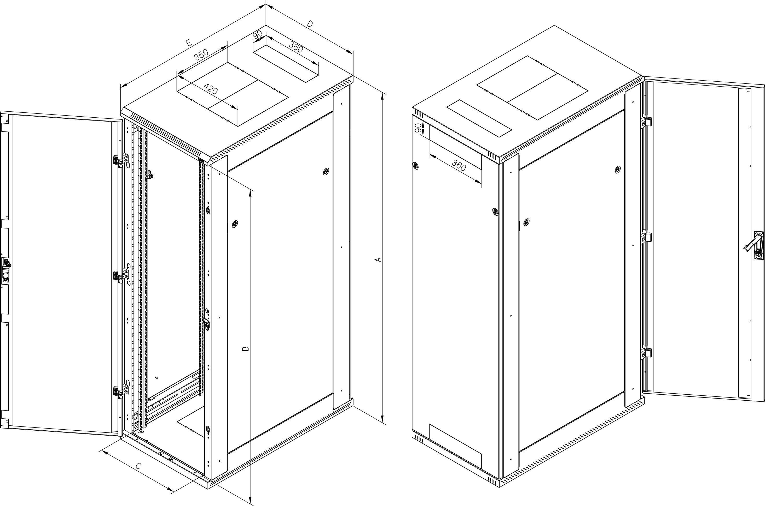 U tohoto typu rozvaděče je možno objednat speciální plechové dveře s přípravou pro montáž ventilačních jednotek RAx-CH-X0x-X3. Více informací naleznete v sekci Aktivní chlazení.