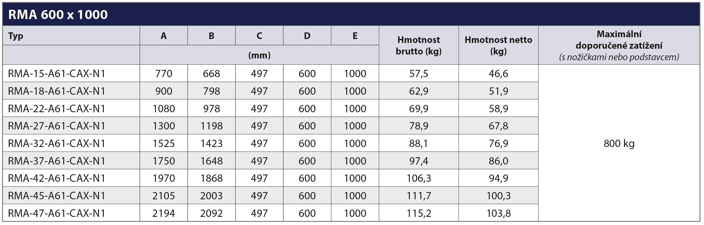 Maximální zatížení: 800 kg