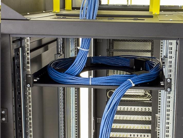 Držák je možno instalovat ve svislé poloze (10U) na 19“ vertikální lišty (obvykle na zadní stranu rozvaděče), nebo po otočení úchytů vodorovně mezi vertikály podobně jako klasickou polici. Nosné trny namontované kolem středového otvoru zajišťují poloměr ohybu uložených kabelů a brání jejich poškození.