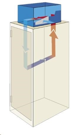 Díky tomuto uspořádání se vzduch z okolního prostředí a vzduch cirkulující uvnitř rozvaděče nemísí, a nezvyšuje se tak vlhkost uvnitř rozvaděče. Vlhkost by mohla při nevhodném nastavení jednotky kondenzovat na povrchu instalovaných zařízení a poškodit je nebo namrzat uvnitř klimatizační jednotky a vyřadit jí tak z činnosti. Je proto třeba věnovat pozornost správnému nastavení jednotky s přihlédnutím na okolní teplotu a vlhkost vzduchu. Pro omezení tohoto rizika je možno doplnit jednotku o dveřní kontakt, který automaticky vypne kompresor v okamžiku otevření dveří.