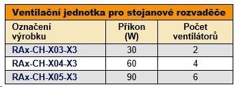 RAB-CH-Xxx-X3, RAC-CH-Xxx-X3 Tyto ventilační jednotky jsou zkonstruovány speciálně pro stojanové rozvaděče. Montují se podle potřeby do podlahy, čepice nebo dveří rozvaděčů. Ventilační jednotka pro stojanové rozvaděče – do čepice se instaluje z venkovní strany rozvaděče, do základny pak z vnitřní strany rozvaděče. Při instalaci do základny rozvaděče je nutno použít montážní rám spodní ventilační jednotky – RAx-CH-Xxx-X1, který se instaluje pomocí oboustranné lepící pásky. Dále doporučujeme pod rozvaděč podstavec pro nasávání vzduchu. Nastavení rozsahu teplot: bimetalový termostat Jmenovité napětí (V/Hz): 230/50-60.