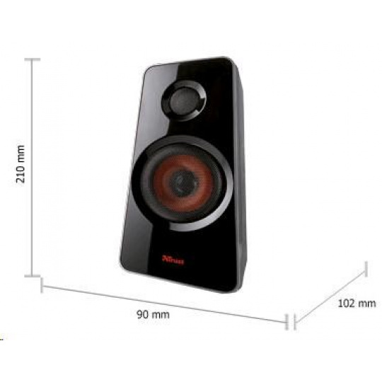Systém GXT 38 dosahuje maximálního výkonu 120 W, což stačí na vytvoření „zvukové stěny“. Součástí sady je velký dřevěný subwoofer se 7palcovým reproduktorem, který vytváří mocné basy, které doslova cítíte. Satelitní reproduktory produkují zvuk optimální kvality ve středním a vysokém pásmu. Ovladačem na boku subwooferu můžete samostatně upravit míru basů a připravit si tak zvuk podle svých představ.