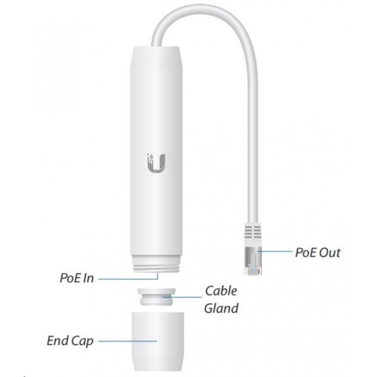 Pomocí tohoto gigabitového konvertoru je možné napájet jednotky UBNT switchem s aktivním PoE dle 802.3af (48V). Konvertor komunikuje se switchem dle 802.3af a do výstupu propouští již klasické pasivní PoE, v tomto případě 24V/0,5A. Lze použít se všemi jednotky od Ubiquity (je kompatibilní i s routerboardy od Mikrotiku).