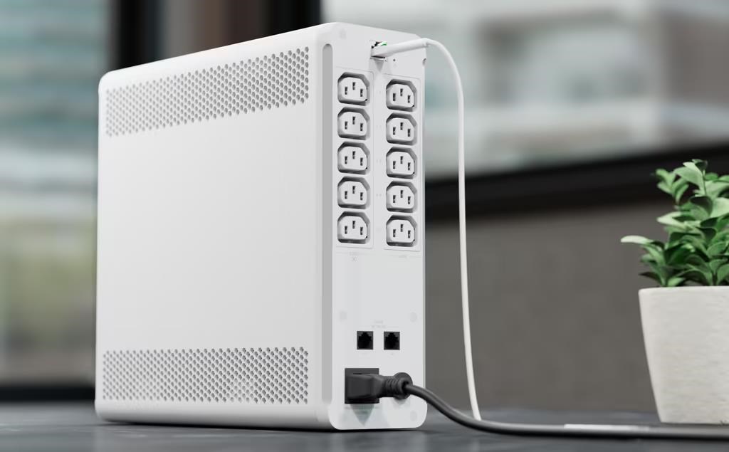 UniFi managed 1kVA uninterruptible power supply with 5 surge-only outlets and 5 software-resettable surge and backup devices. Compatibility: USW-Ultra-210W , USW-Pro-Max-16 , USW-Pro-Max-16-PoE , USW-Pro-Max-48 , USW-48-POE , USW-Pro-48 , USW-Pro-HD-24-PoE , UDM-SE , USW-Aggregation , USW-Flex-2.5G-8 , USW-Pro-24 , USW-Pro-XG-10-PoE , USW-WAN , USW-Pro-Aggregation , USW-Pro-8-PoE , USW-Pro-XG-48 , UDM-Pro-Max , UXG-Pro , USW-24-POE , UCG-Fiber , UX , USW-Flex-2.5G-5 , USW-Pro-Max-48-PoE , UNVR-Pro , USW-Pro-Max-24-PoE , USW-Flex-Mini , USW-Flex-Mini-3 , USW-Flex-Mini-5 , USW-Pro-24-POE , USW-Pro-XG-24 , UDR7 , UDR , USW-Flex-XG , USW-Pro-HD-24 , USW-Pro-48-POE , USW-Lite-8-POE , UNVR , USW-48 , UDM-Pro , USW-Enterprise-24-PoE , USW-Flex-Utility , USW-16-POE , USW-Pro-XG-48-PoE , USW-Pro-XG-24-PoE , USW-WAN-RJ45 , UNAS-Pro , USW-Flex , USW-Flex-3 , USW-Ultra-60W , UX7 , USW-24 , UNAS-2-B , UNAS-2-W , USW-Ultra , USW-EnterpriseXG-24 , USW-Lite-16-POE , USW-Flex-2.5G-8-PoE , USW-Enterprise-8-PoE.