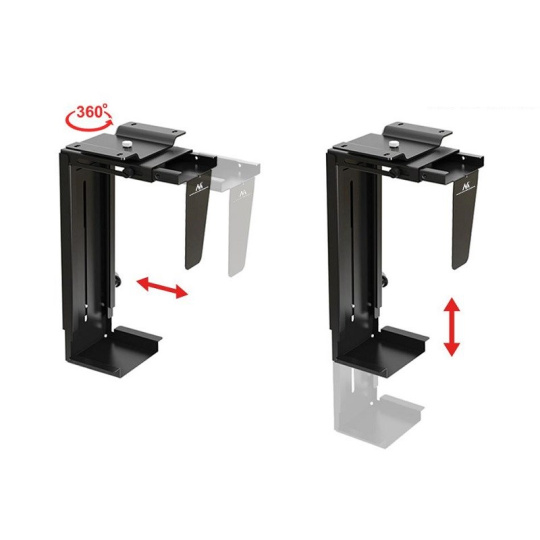 Univerzální držák na PC Fiber Mounts M7C13B Profesionální držák na PC, uchycení na stůl nebo stěnu, nastavení na požadované rozměry, nosnost 10kg Držák na PC špičkové kvality a bezpečnosti. Velmi pevné uchycení vašeho PC na stůl nebo stěnu. Nastavení na rozměry vašeho PC. Materiál ocel, barevné provedení černé. Na PC s hmotností až 10kg. Snadná a rychlá instalace. Záruka 5 let. Držák na PC počítač pro uchycení pod stůl, na bočnici stolu, na stěnu nebo i na strop Fiber Mounts M7C13B Technické údaje: nosnost 10kg univerzální, vhodný na většinu dostupných PC šířka PC od 88mm do 203mm výška PC od 359mm do 592mm délka PC není podstatná otáčení do stran zajištění v požadovaných rozměrech profesionální výrobek špičkové kvality bezpečný, pevný, spolehlivý uchycení na svislou nebo vodorovnou plochu pod stolovou desku, na bočnici stolu, na stěnu nebo i na strop materiál ocel barevné provedení černé záruka 5 let Stolní držák pro uchycení počítače PC toweru Fiber Mounts M7C13B Univerzální držák PC, který uchytíte na jakoukoliv svislou nebo vodorovnou plochu - pod desku stolu, na bočnici stolu, na stěnu nebo třeba na strop. Univerzální, nastavení na potřebné rozměry a zajištění v pozici. Snadná a rychlá montáž..