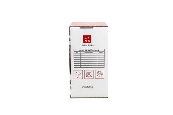 Instalační kabel LYNX Cat5E UTP je vhodný pro trvalé instalace ve vnitřních prostředích budov, staveb a ostatních zařízeních. Kabel je vhodný pro přenosové rychlosti až 2,5 Gb/s. Kabel je vyroben z měděného drátu o průměru 0,48 mm s pláštěm z PVC a třídou reakce na oheň Eca.