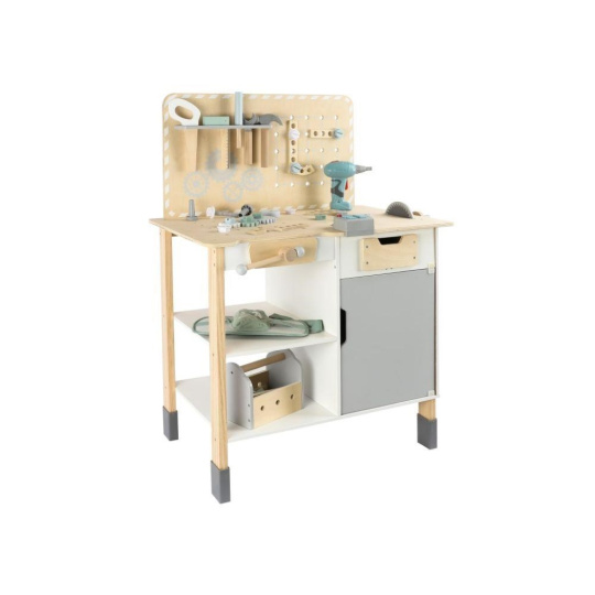 Velký dřevěný dětský ponk s nářadím a rozšířeným příslušenstvím + opasek na nářadí ZDARMA