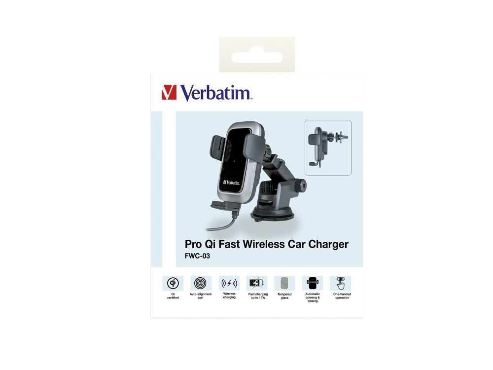 Rychlonabíjecí držáky telefonu Verbatim využívají vysokorychlostní dobíjecí technologii Qi poskytující bezpečné a rychlé dobíjení vašeho telefonu s operačním systémem Android či iPhone Vysoce kvalitní dobíjecí držák umožňuje hands-free telefonáty a snadné prohlížení GPS map a zároveň rychle nabije váš chytrý telefon s technologií Qi.