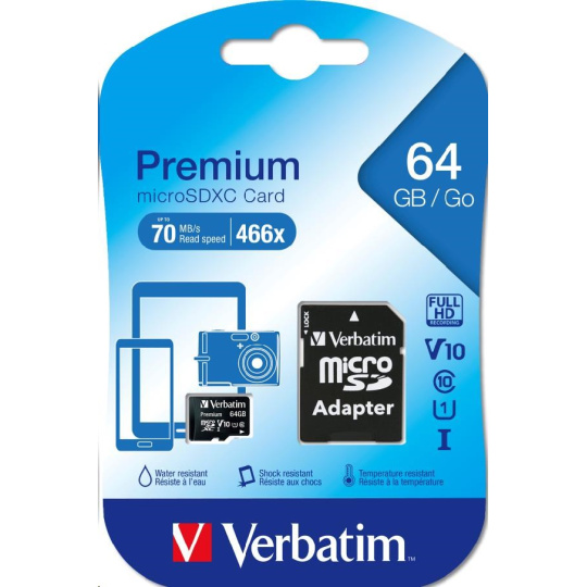 VERBATIM MicroSDXC karta 64GB Premium, U1 + adaptér