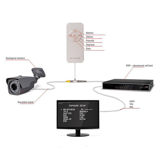 - Kompatibilní s kamerami s funkcí UTC ("Up-The-Coax")
