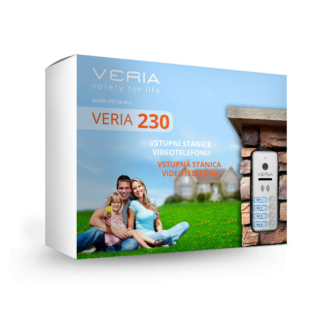 Vstupní kamerová jednotka VERIA 230Q je vybavena 2 výstupními NO (normal open = v klidu otevřený) kontakty – jedním zatížitelným proudem až 4 A určeným pro ovládání elektrického zámku a druhým určeným pro ovládání zařízení bez proudové zátěže, jako například pojezdu elektrické brány. Montáž jednotky je díky dodávanému spojovacímu materiálu snadná a rychlá. Jednotku lze upevnit na rovný povrch, nebo pod úhlem 30° s pomocí kovové konzole, která je rovněž součástí balení. Vstupní kamerová jednotka VERIA 230Q je kompatibilní s monitory VERIA 7070, VERIA 7076 a VERIA 7077.