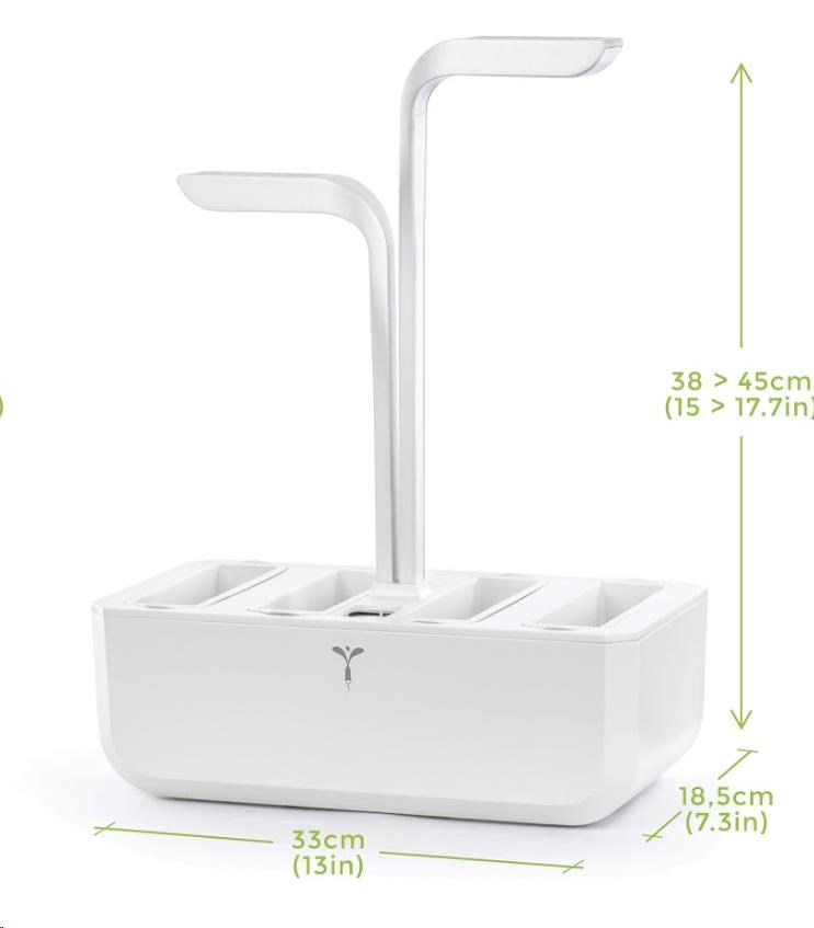 - Model Classic se hodí do prostorů bez přímého slunečního svitu – Sluneční svit kombinovaný s LED lampami by mohl způsobit spálení výhonků. Pro místa s přímým slunečním svitem doporučujeme model Smart s automatickou regulací LED svícení.