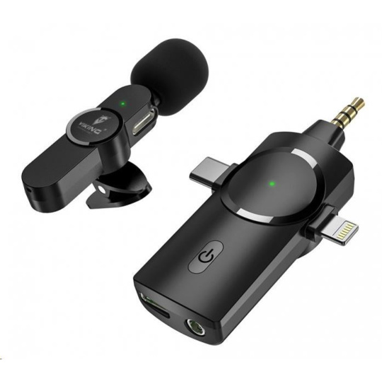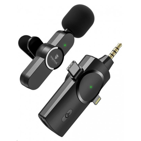 Viking bezdrátový mikrofon s klipem M360, konektor USB-C / Lightning / 3,5 mm jack