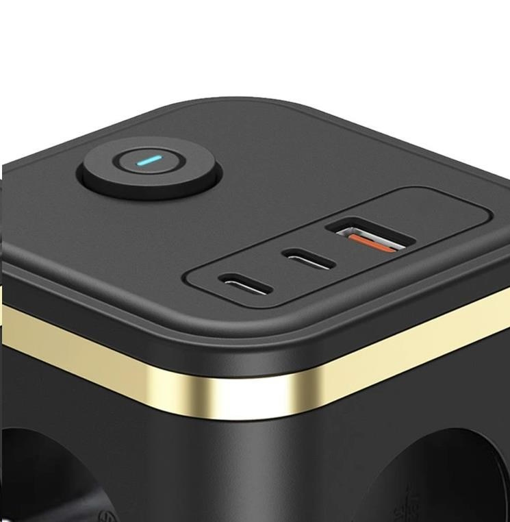 Síťový adaptér VIKING YC33 umožňuje pohodlné nabíjení až 6 zařízení současně díky 3 AC výstupům a 3 USB portům.