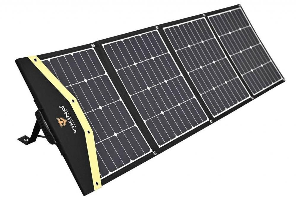 Solární nabíjecí panel pro všechna vaše elektronická zařízení. Se svými 180W/19.8V, je ideální volbou pro nabíjení bateriových generátorů značky VIKING. Díky vysoce kvalitním článkům s efektivitou 22.4%, dokáže přeměnit sluneční svit na solární energii daleko efektivněji, než řada jeho konkurentů.