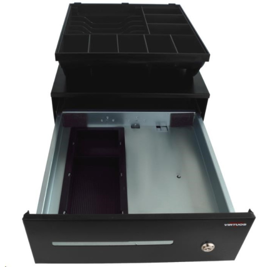 Virtuos pokladní zásuvka SK-325C - s kabelem, pořadač 6/8, 9-24V, černá