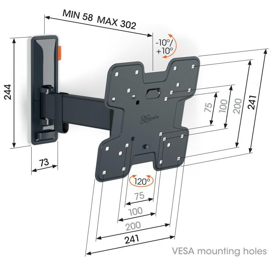 TV 19-43", natáčení 120°, náklon 20°, hloubka 58-302 mm, VESA do 200x200, 15 kg.... více