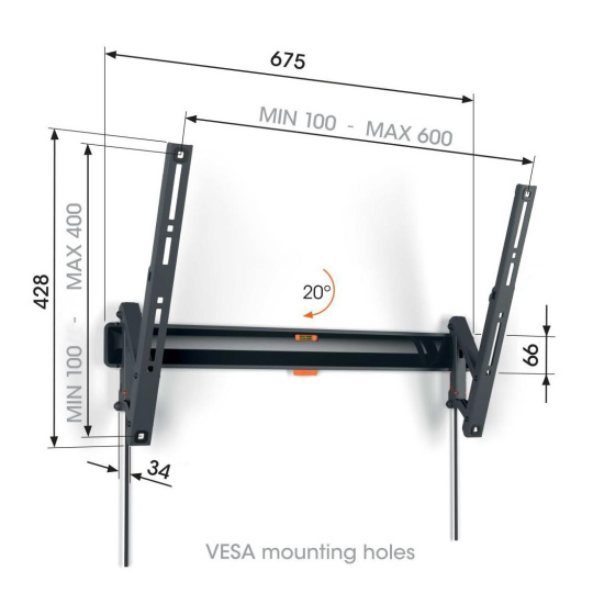 Hledáte bezpečný a stylový nástěnný držák na televizor pro svůj velký plochý televizor? Takový, který můžete naklonit, protože chcete televizor připevnit na stěnu o něco výš, například v ložnici? Pokud ano, tento nástěnný držák řady COMFORT Tilt je ideální volbou. Můžete jej naklonit až o 20° a vytvořit tak ideální pozorovací úhel. Nástěnný držák je vhodný pro velké televizory s úhlopříčkou 40 až 77 palců a hmotností do 35 kg.