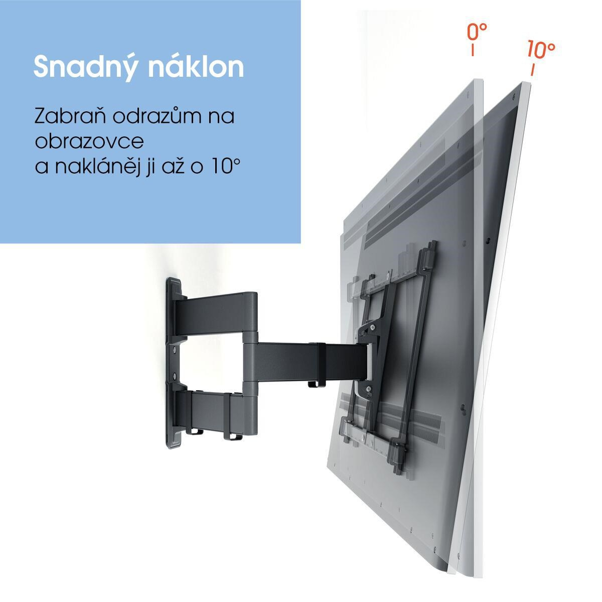 - Snadné naklápění - vyhněte se odrazům a skloňte TV až do úhlu 10°, zajištění a uvolnění pomocí TiltAnchor™