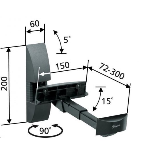 Nástěnný držák bez nutnosti vrtání do skříně reprosoustavy, ta se sevře čelisťovým mechanismem. Ideální pro regálové reprosoustavy střední velikosti