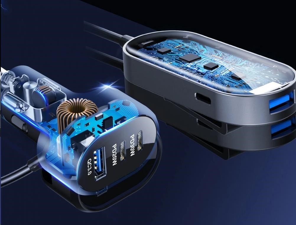 WG - Autonabíječka rozbočovač / 100W / 6 USB ports / 2x USB-A + 4x USB-C / s prodloužením