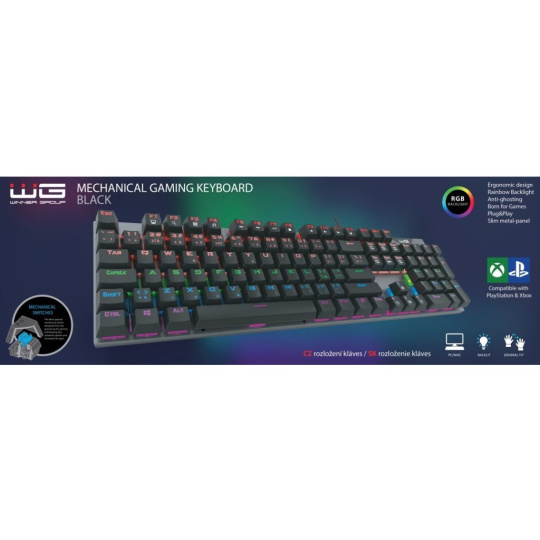 WG - Herní mechanická klávesnice WG, podsvícená, drátová, černá