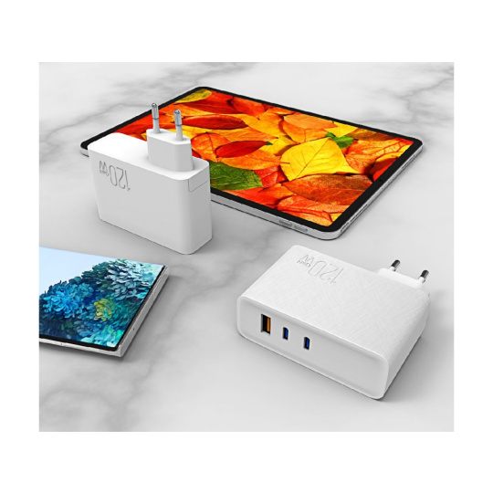 Objevte výkon a rychlost nabíjení se Síťovou nabíječkou Hyper Fast GaN 120W/5A, která dokáže nabít až 3 zařízení současně. Podporuje různé nabíjecí technologie. Nabíječku lze použít pro notebooky, mobilní telefony atd.