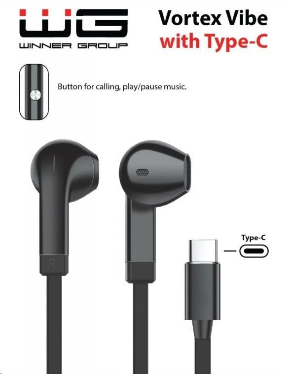 WG - Sluchátka s konektorem Type-C, Vortex Vibe, drátové, black