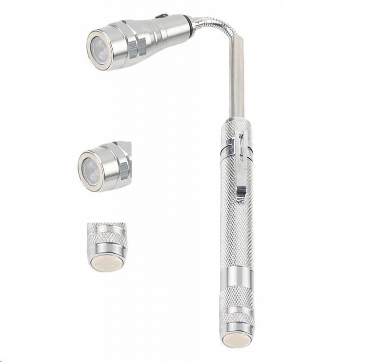 S naší inovativní teleskopickou svítilnou získáte všestranného pomocníka na každém kroku. Tento jedinečný produkt kombinuje svítilnu, výsuvnou teleskopickou tyč s ohebnou částí a užitečné magnety na obou koncích svítilny, což ji činí opravdu multifunkční.
