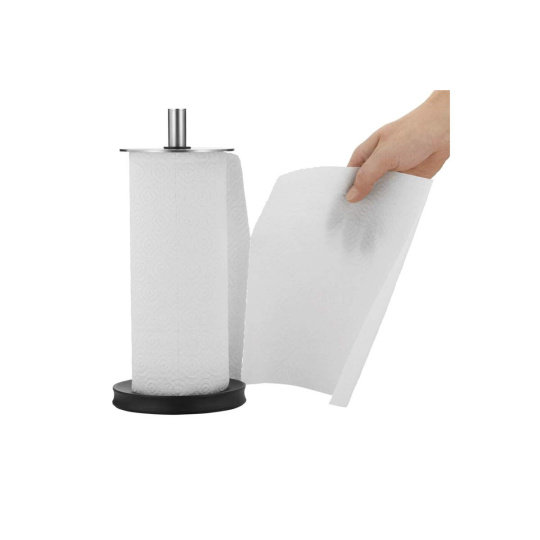 • Stabilní základna: Široká a zatížená spodní část zajišťuje, že držák pevně stojí na pracovní desce i při odtrhávání utěrek jednou rukou.