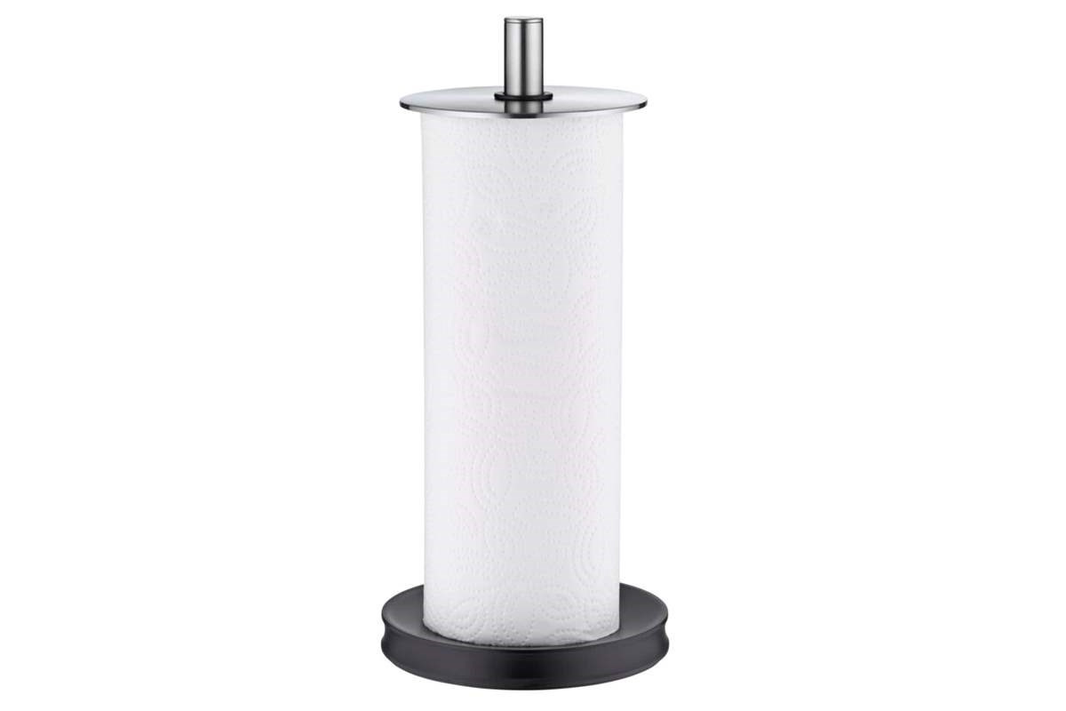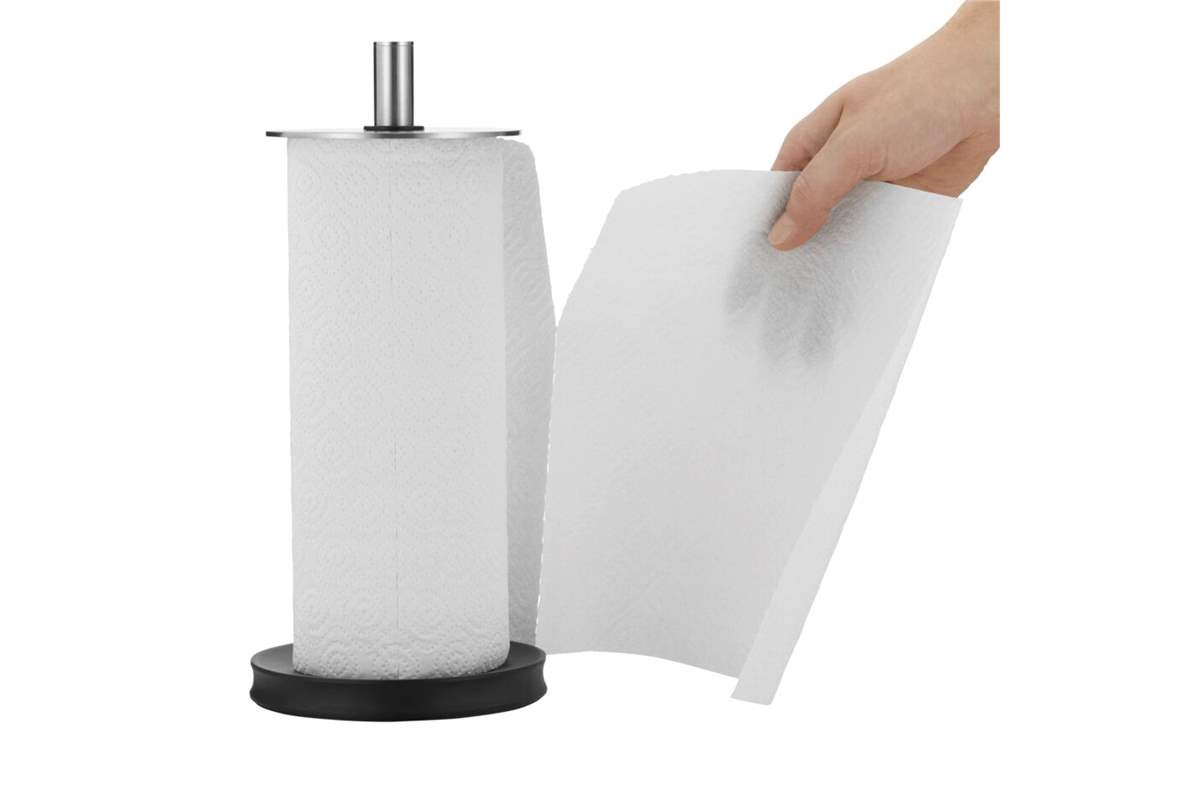 • Stabilní základna: Široká a zatížená spodní část zajišťuje, že držák pevně stojí na pracovní desce i při odtrhávání utěrek jednou rukou.