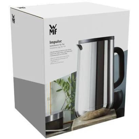 Termo izolační konvice řady WMF Impulse zaručují, že nápoje zůstanou teplé nebo studené – bez ohledu na venkovní teplotu. Kvalitní skleněné izolační jádro udržuje kávu při teplotě vyšší než 70°C, a to i po 12-ti hodinách. Zcela nepropustný automatický šroubový uzávěr zajišťuje odlévání bez kapání. Oceněný design kombinuje moderní vzhled s trendy barvami a kovovými akcenty.