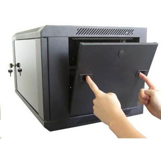 XtendLan 19" nástěnný rozvaděč 6U 600x450, nosnost 60 kg, skleněné kouřové dveře, svařovaný, černý