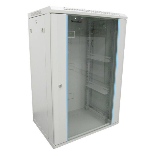 XtendLan 19" nástěnný rozvaděč 18U 600x450, nosnost 60 kg, skleněné dveře, svařovaný, šedý