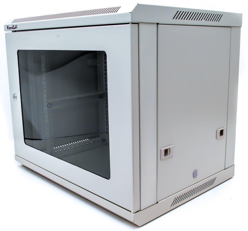 XtendLan 19" nástěnný rozvaděč 9U 600x450, nosnost 60 kg, skleněné kouřové dveře, svařovaný, šedý
