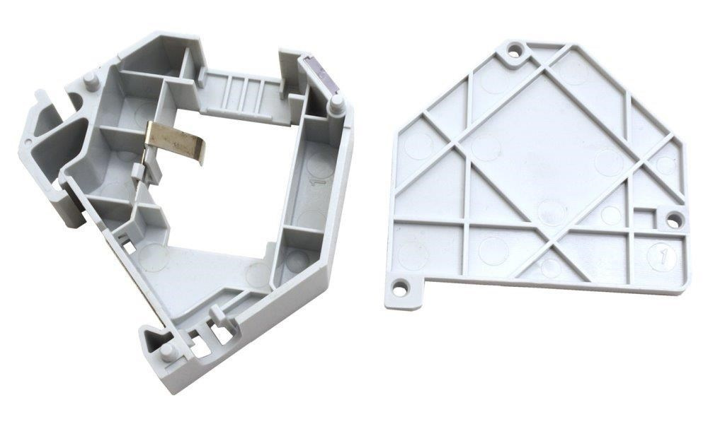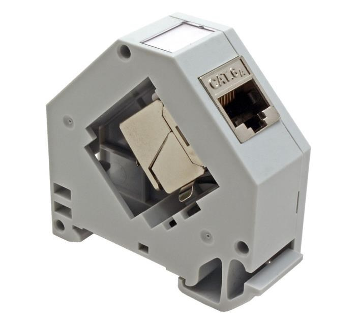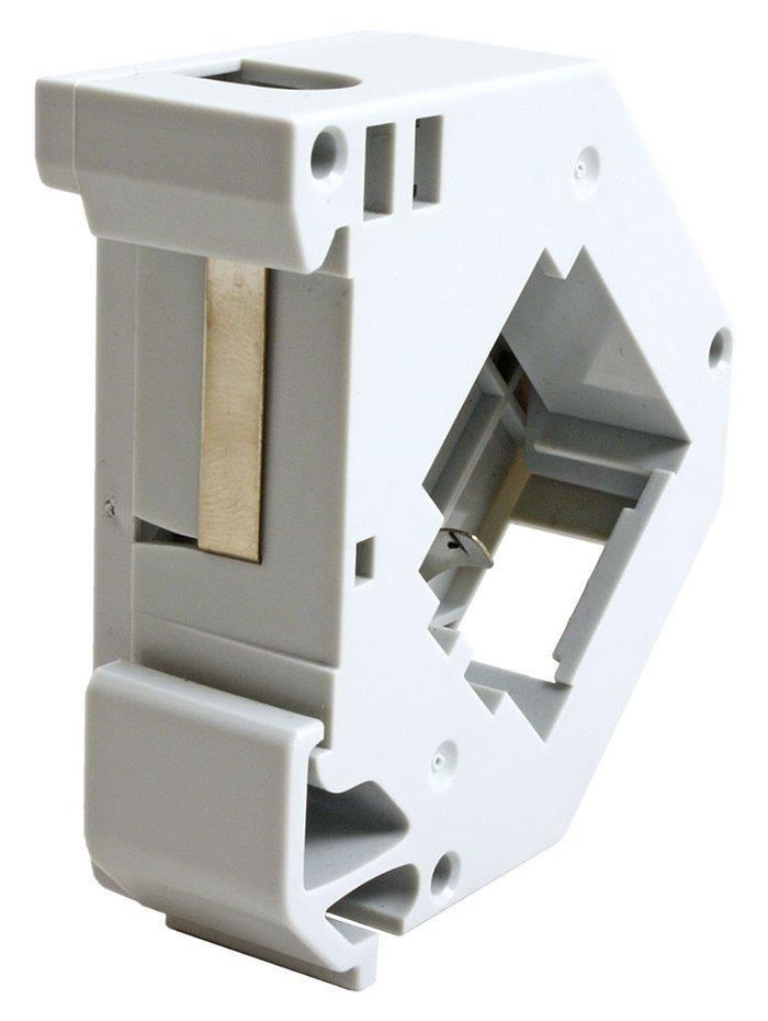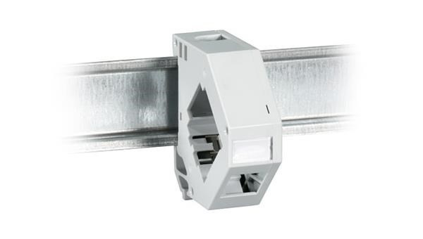 Plastový držák pro 1 keystone na DIN lištu. Integrovaný kovový pásek zajišťuje uzemnění keystone modulu.