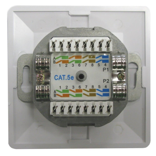 Zásuvka STP 2x RJ45 Cat5E, duální svorkovnice, pod omítku