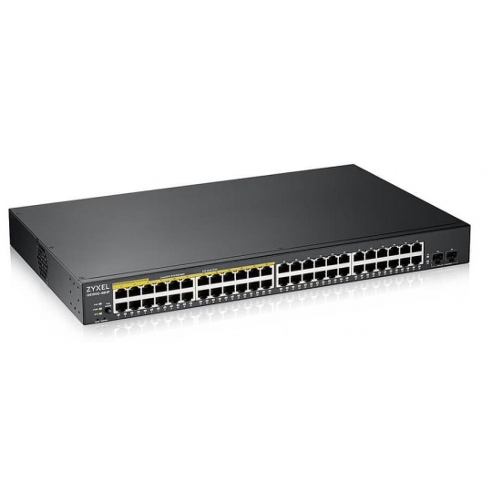 Zyxel GS1900-48HP v2 50-port Gigabit Web Smart PoE switch, 48x gigabit RJ45 (z toho 24x PoE), 2x SFP, PoE budget 170W
