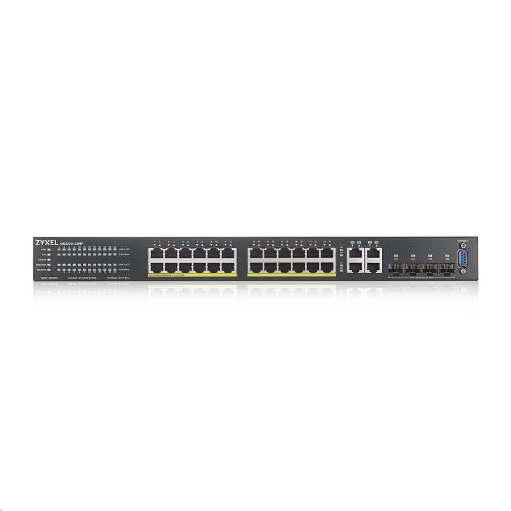 Zyxel GS2220-28HP 28-port L2 Managed Gigabit PoE Switch, 24x gigabit RJ45, 4x gigabit RJ45/SFP, PoE 375 W