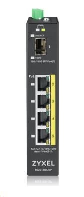 Zyxel RGS100-5P 5-port Gigabit PoE switch, 4x GbE + 1x SFP, PoE budget 120W, DIN rail/Wall mount, IP30